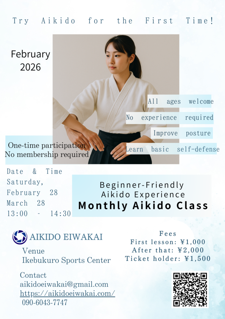 We will be holding our Once-a-Month Beginner Aikido Class — a gentle and welcoming session for anyone who would like to experience Aikido at an easy pace.